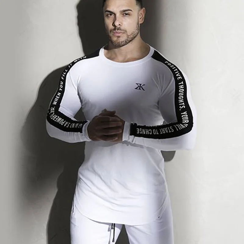 Мужская облегающая футболка с длинным рукавом, Повседневная модная ...