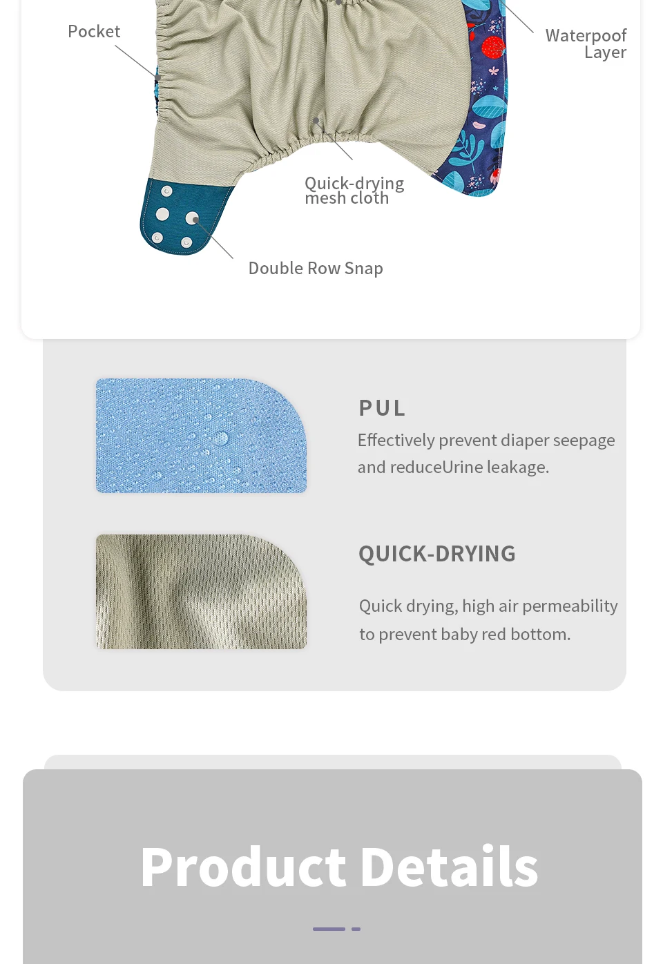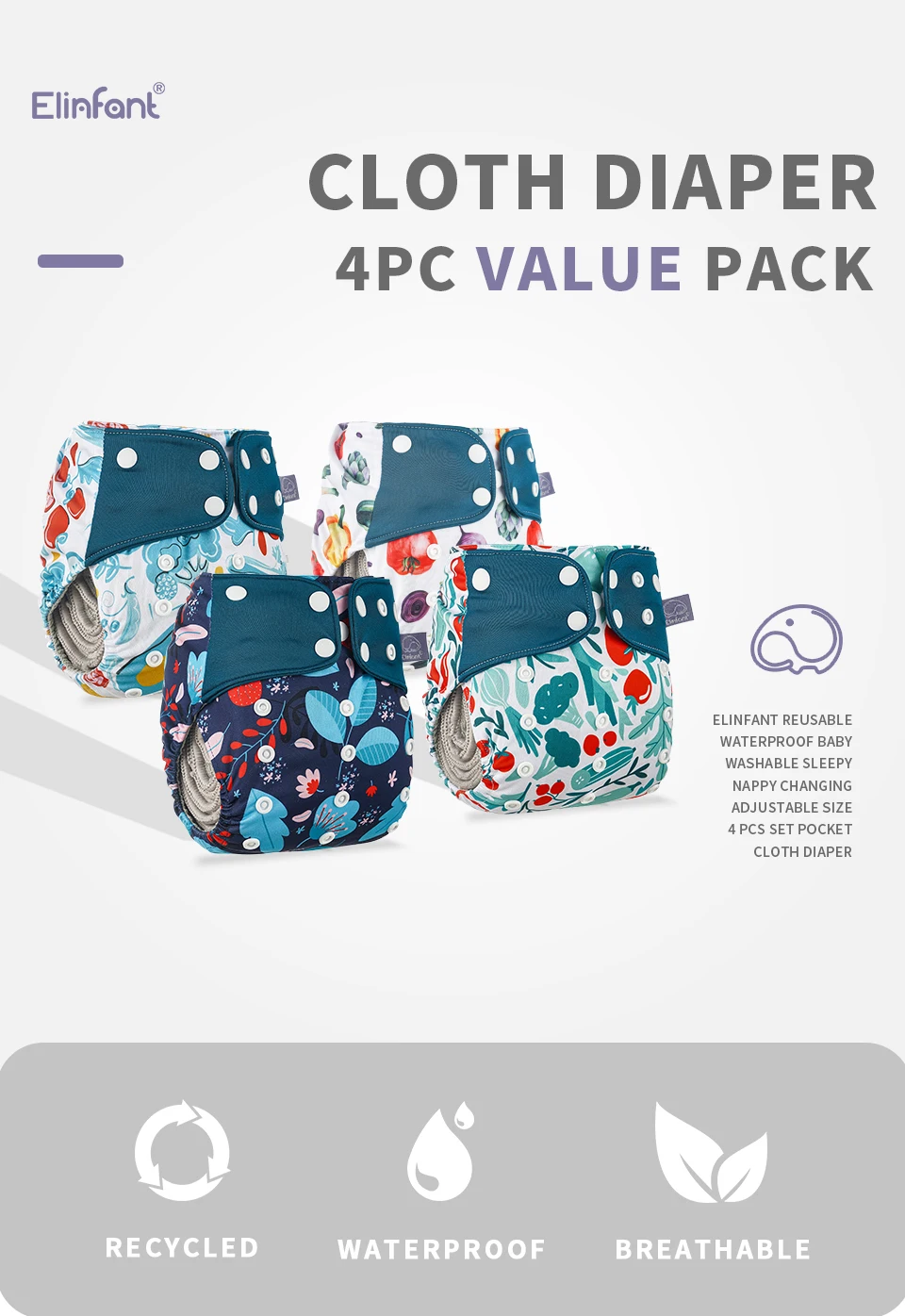 Новинка Elinfant, 4 шт.компл., моющаяся многоразовая серая сетчатая ткань регулируемый по размеру подгузник, тканевый подгузник, карманный подгузник, подходит для детей от 3 до 15 кг