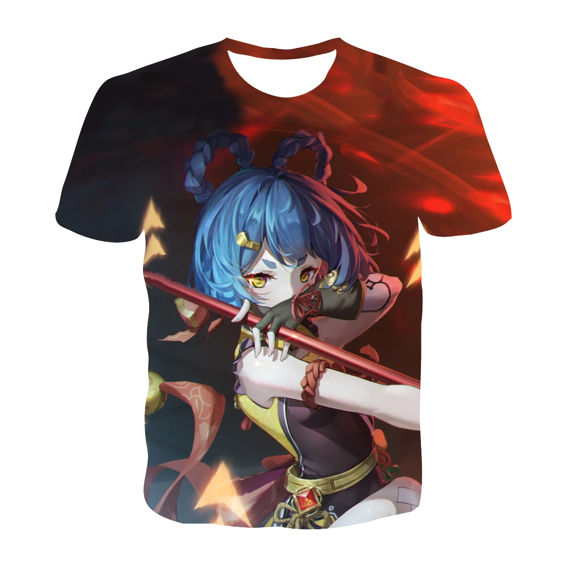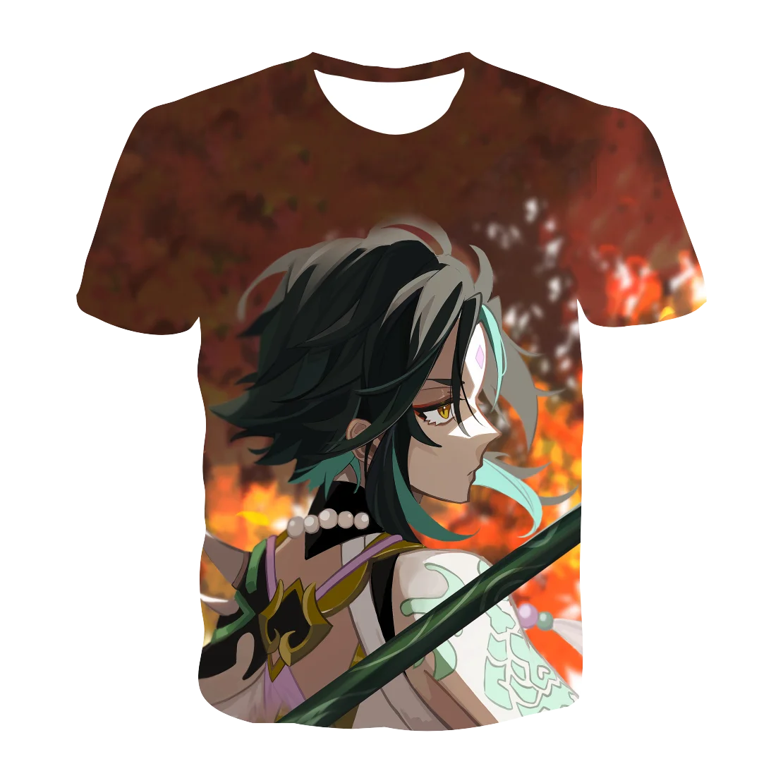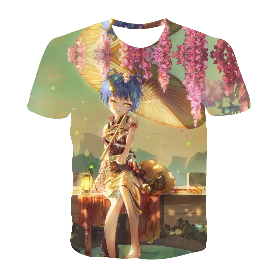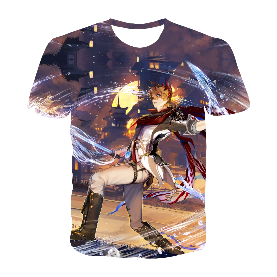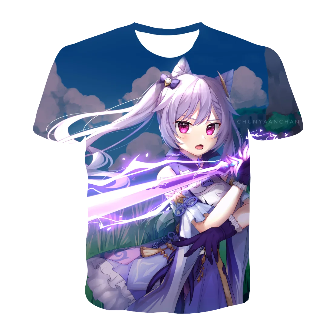 Новинка, летняя футболка для игры Genshin Impact, одежда для детей, детская одежда 3D для мальчиков и девочек, топы, футболки от 4 до 14 лет