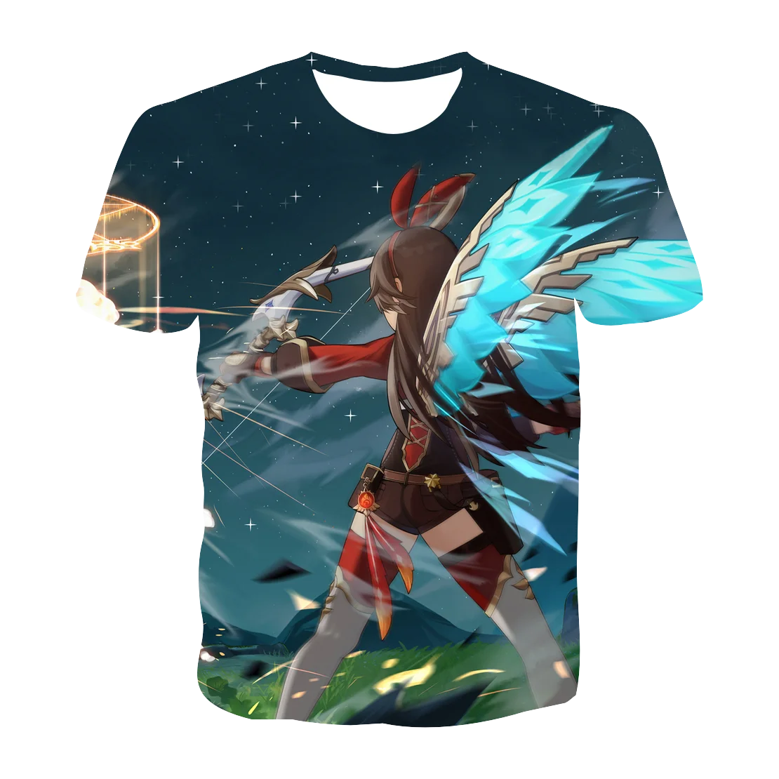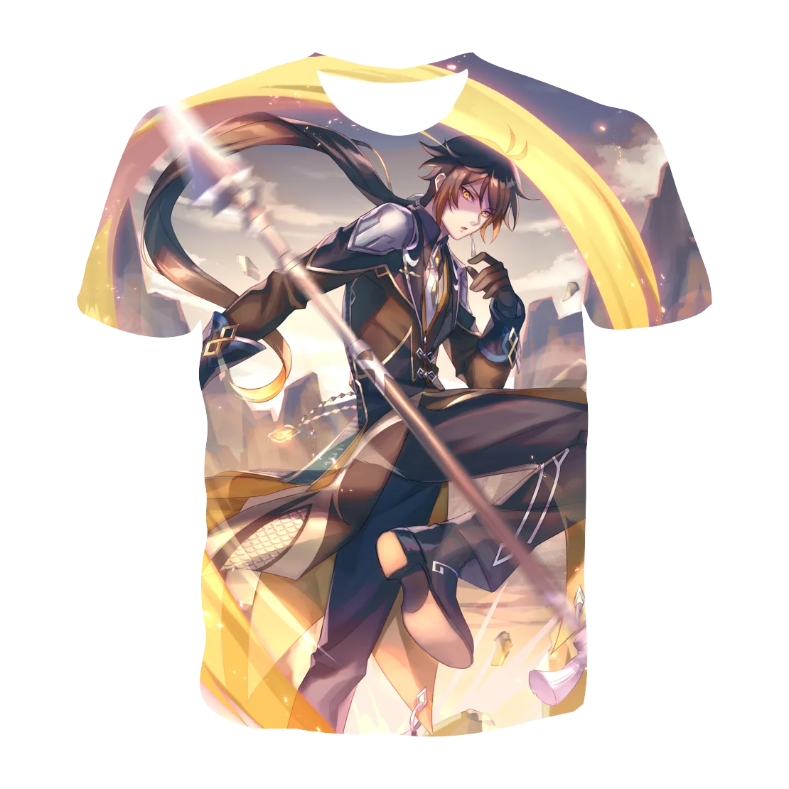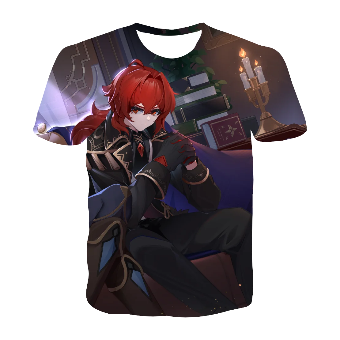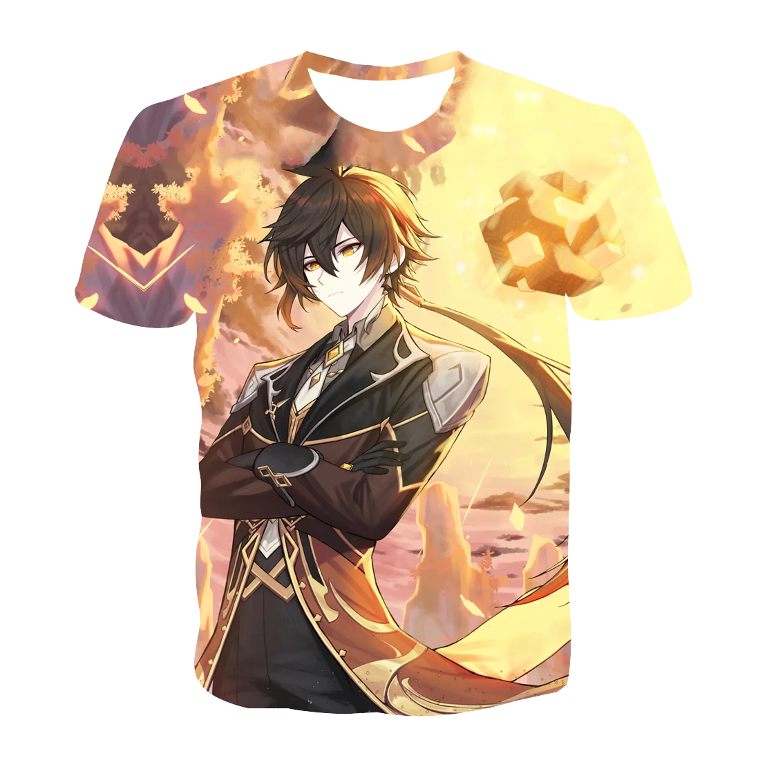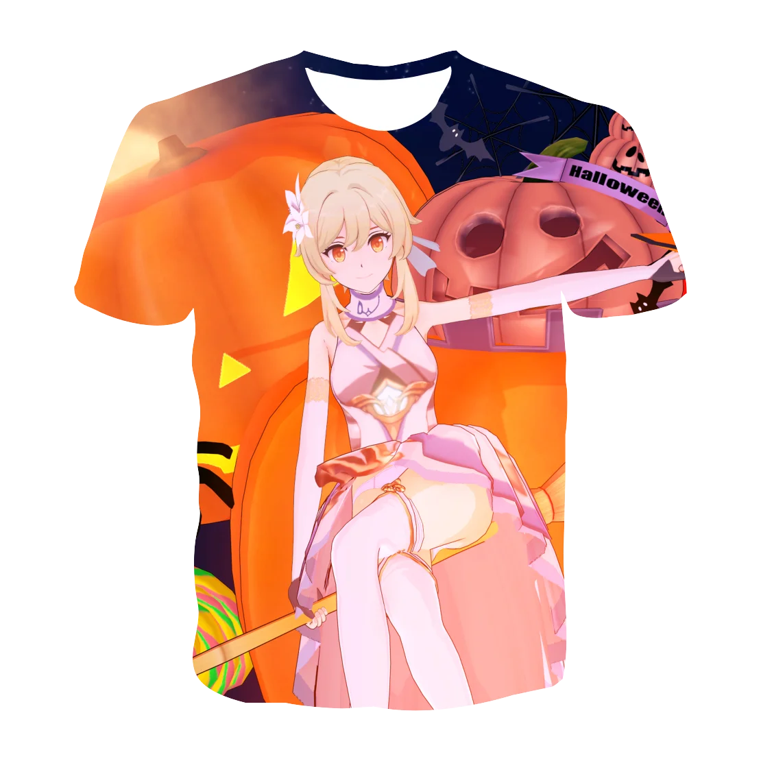 Новинка, летняя футболка для игры Genshin Impact, одежда для детей, детская одежда 3D для мальчиков и девочек, топы, футболки от 4 до 14 лет