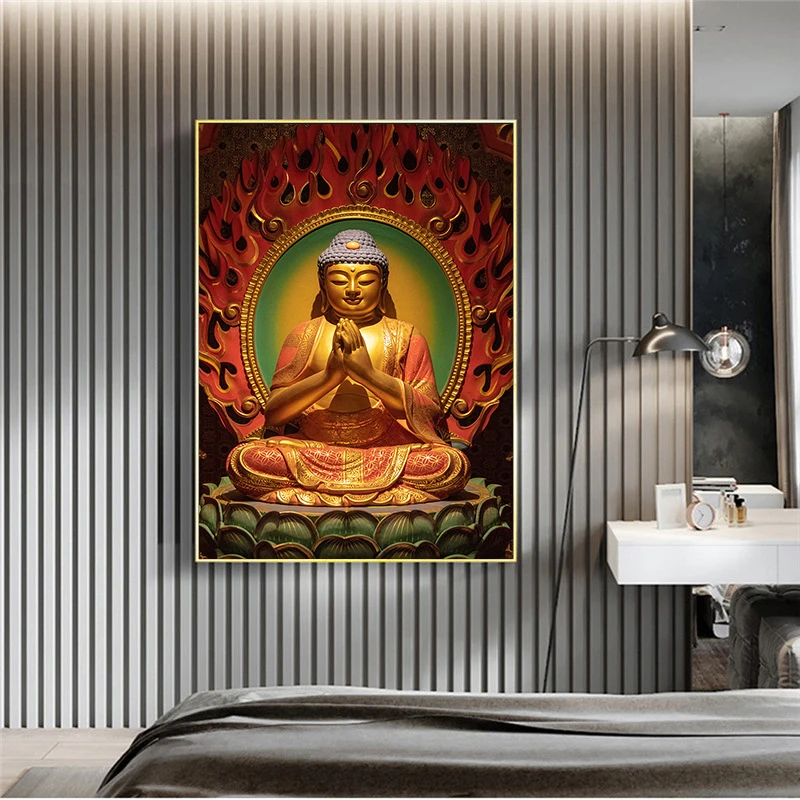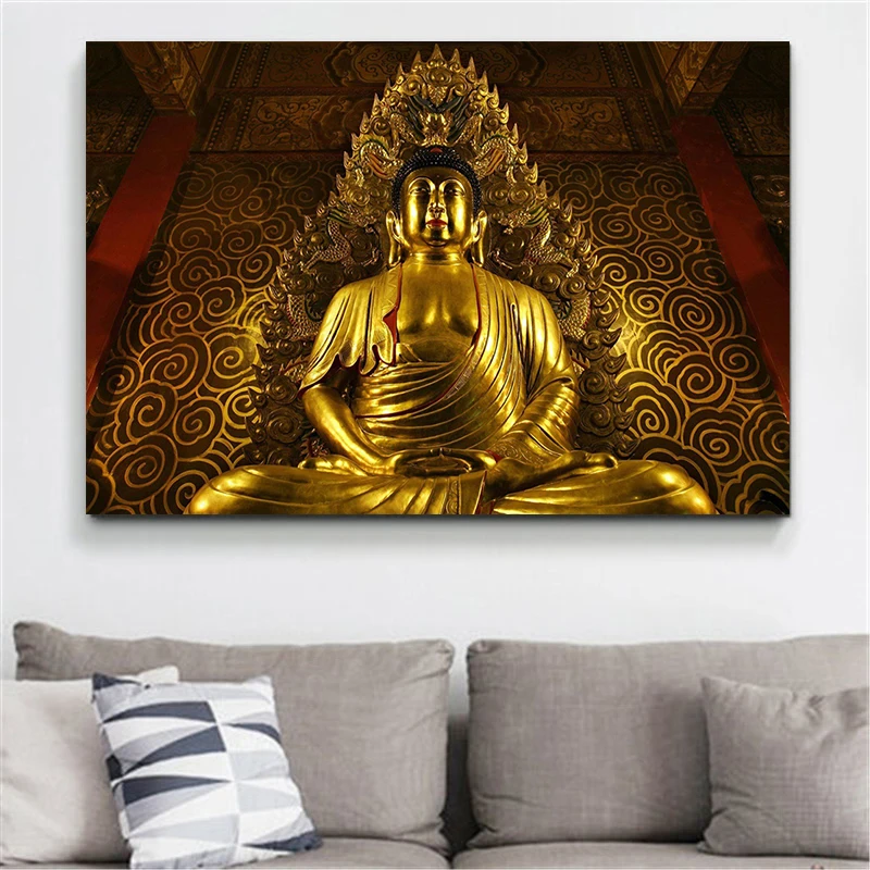 Холст золотого цвета, Будда, живопись, печать, домашний декор, наст...