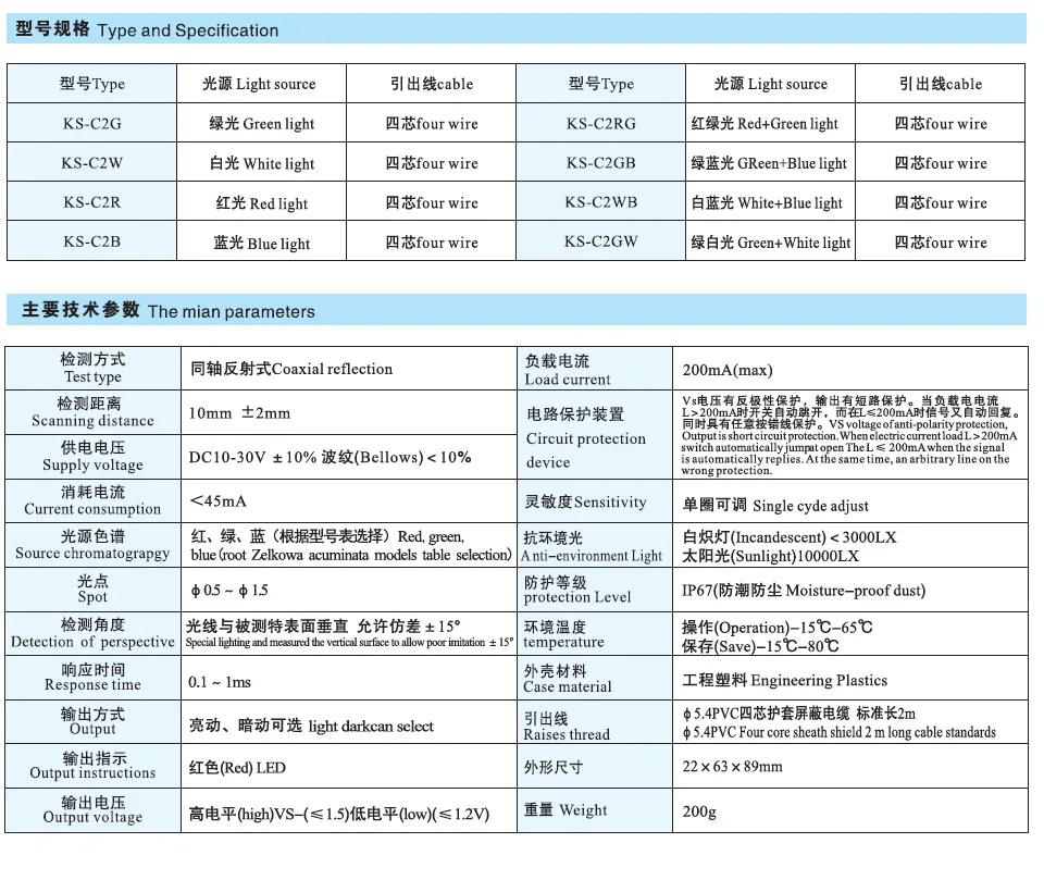 Датчик цветового кода OMCH KS-W22, KS-G22, KS-R22, 10-30 в, фотоэлектрический датчик маркировки KS-RG22, KS-WR22, KS-WG22