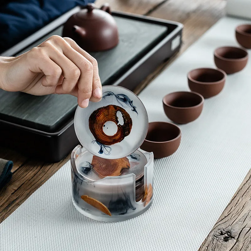 Креативная Подставка под стаканы из массива дерева в японском стиле, простой Теплоизоляционный подстаканник, Многофункциональный фон для фотографий, Декор