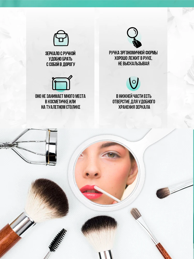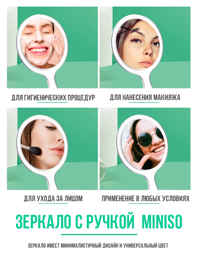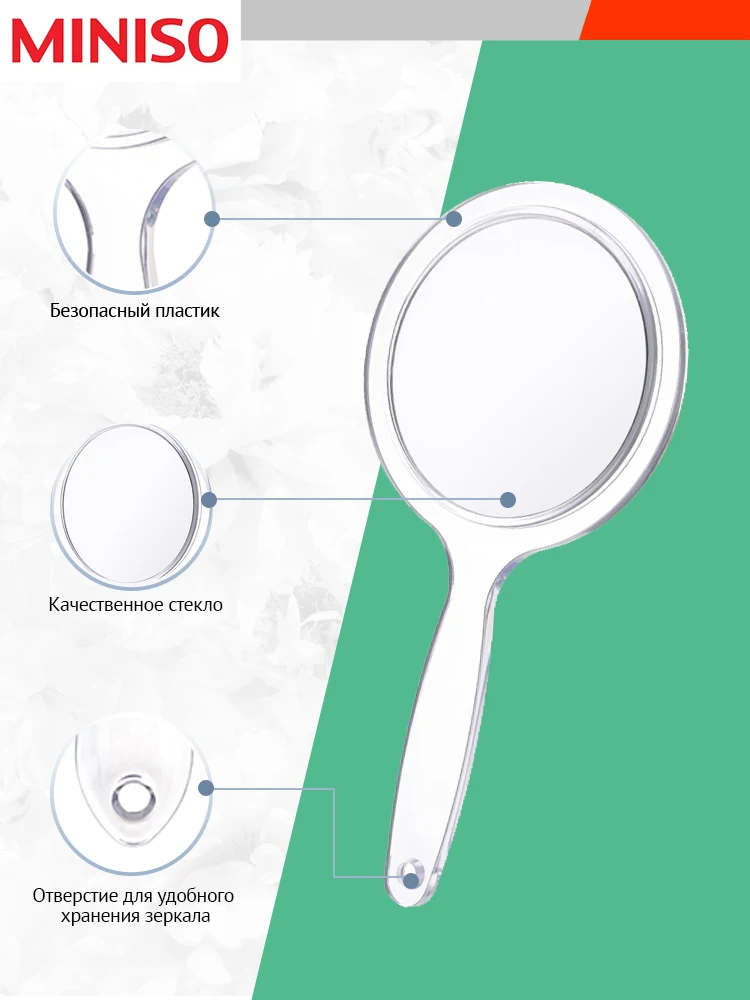 Зеркало для макияжа с прозрачной ручкой MINISO Минисо