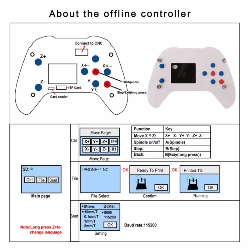 Гравировальный станок GRBL, 1,8 дюйма, ручка, автономное управление, совместим с SD-картой, плата управления, конфигурация ЧПУ