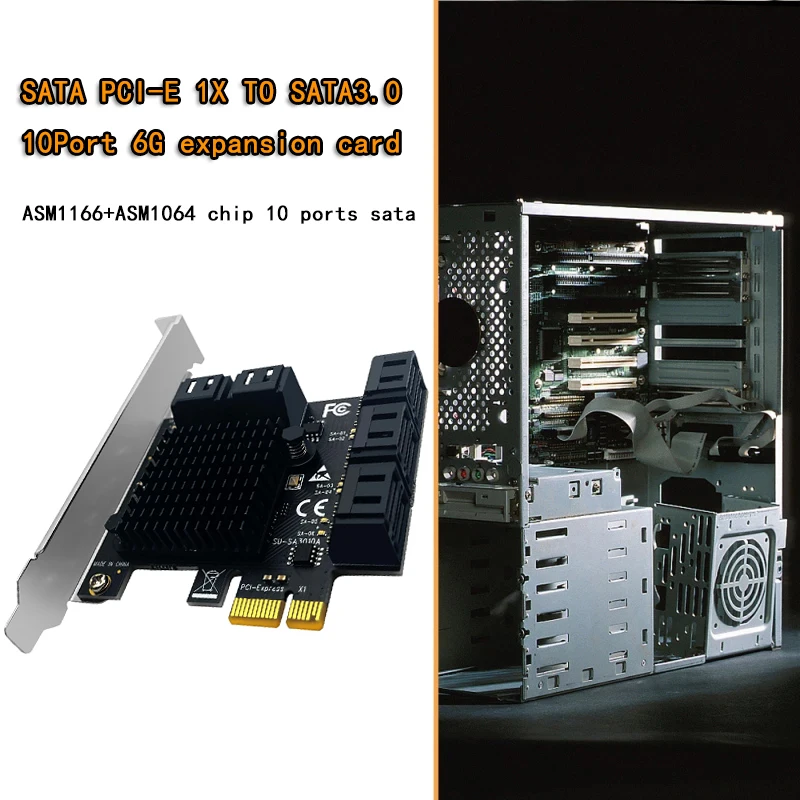 ЧИА Майнинг PCIE SATA карта адаптер 10 портов SATA 3,0 к PCIe3.0 X4...