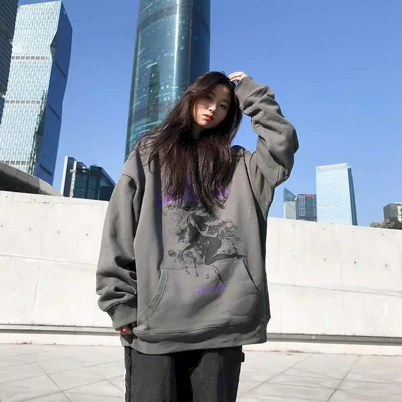 Японская мода в стиле Харадзюку, свободная серая, черная, крутая Осенняя Женская свободная парная модная толстовка, топы с принтом