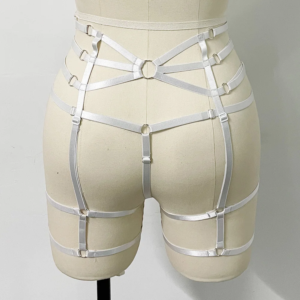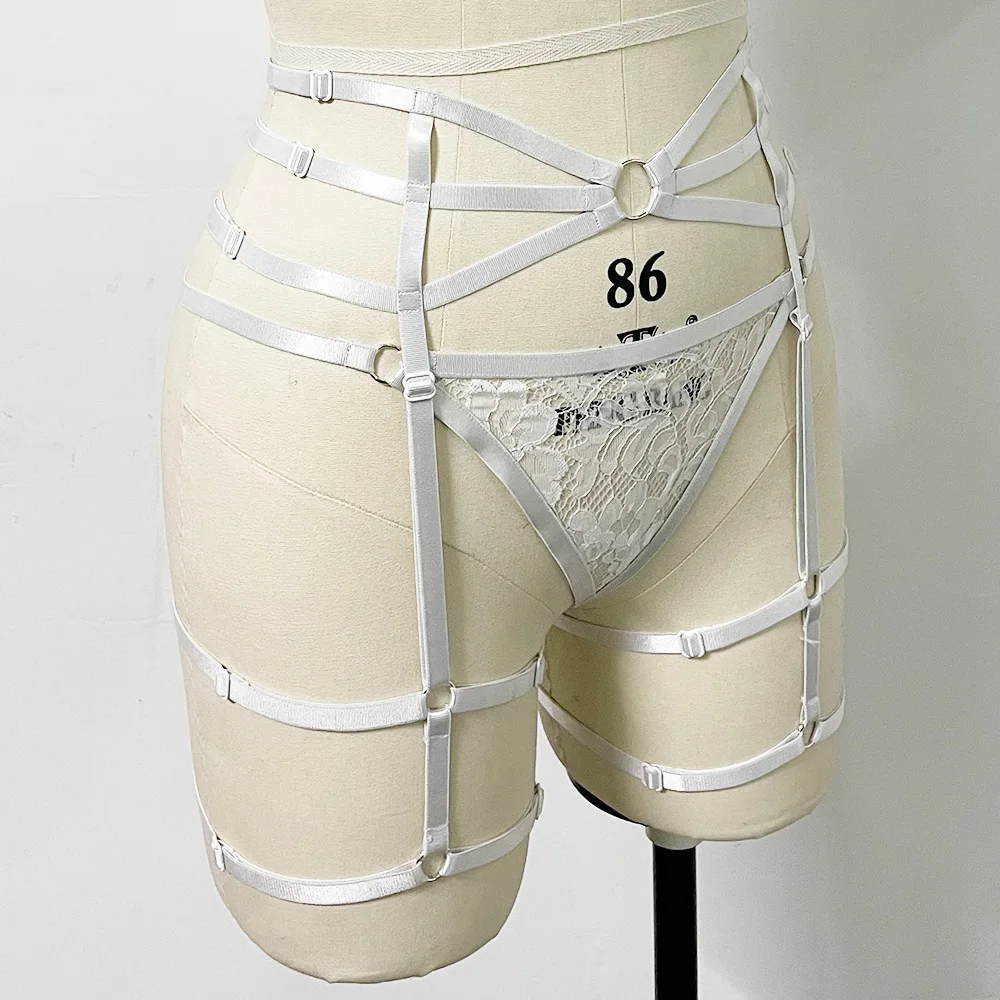 Белый ремень, эластичное сексуальное нижнее белье, кружевные трусики-стринги, полый боди-клетка, бондаж