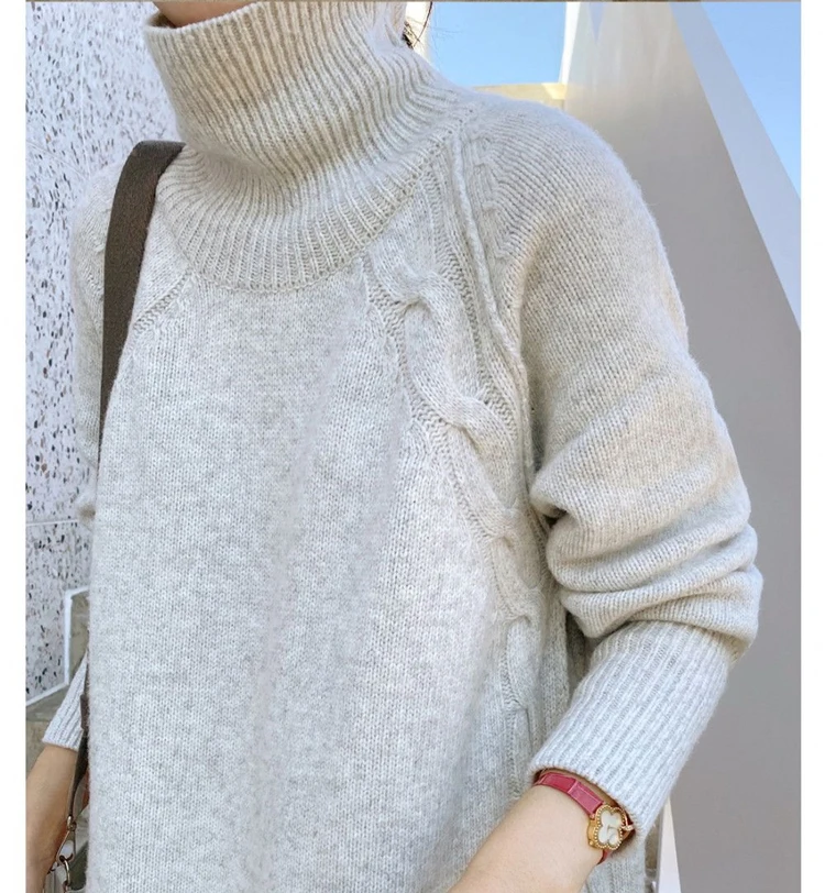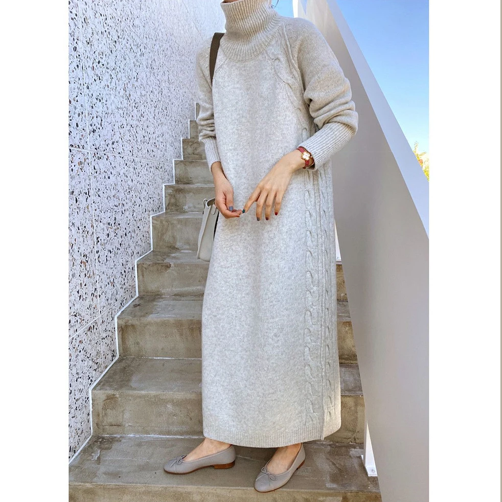 Женское трикотажное платье, серое Длинное свободное платье-свитер с воротником-хомутом и длинным рукавом, элегантная теплая трикотажная одежда в Корейском стиле на осень и зиму