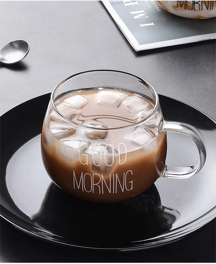 Доброе утро, прозрачная стеклянная кофейная чашка, чашка для чая, молока, необычная стеклянная кружка