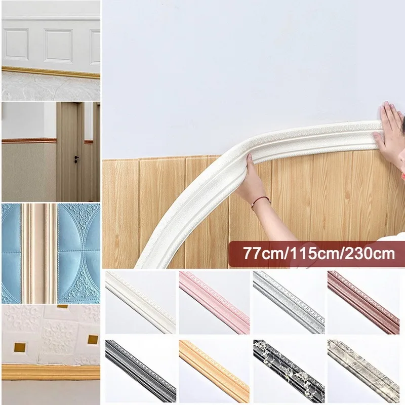 Рельефная угловая линия, 3D пенопластовая настенная поясная линия, водостойкая самоклеящаяся 2,3 м настенная кромка, Настенная Наклейка
