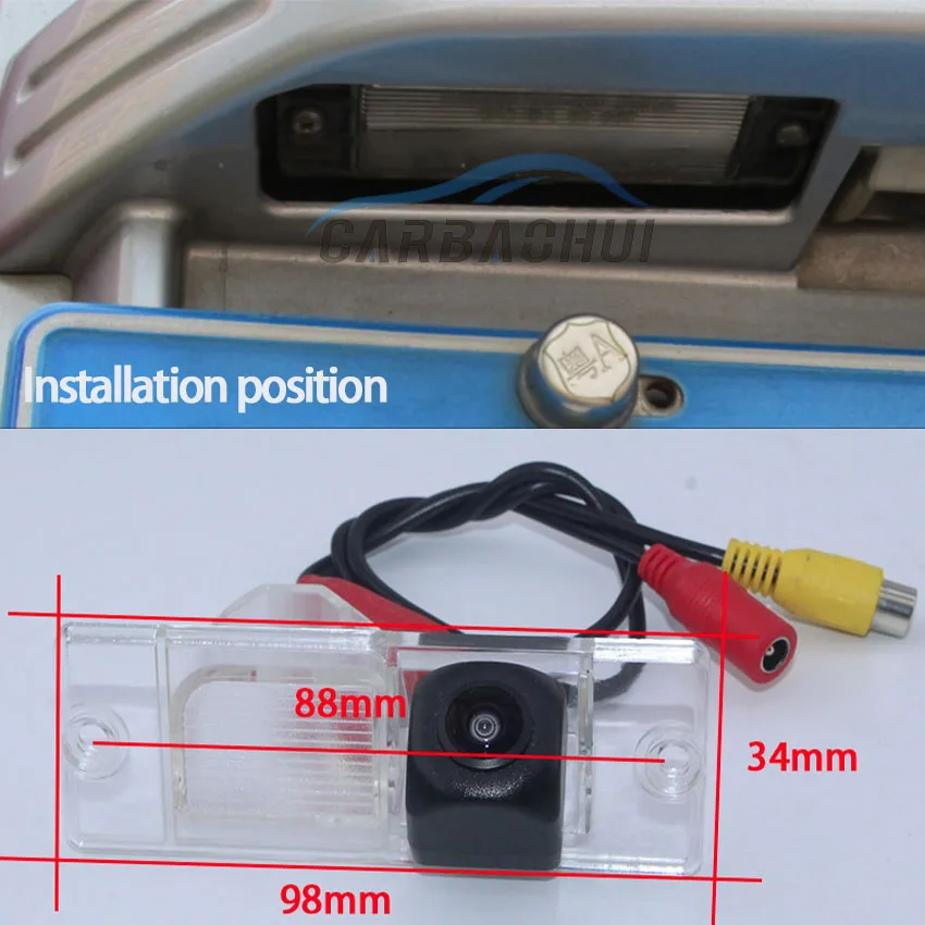 Перед заказом, пожалуйста, убедитесь, что фото размера камеры одинаковое, расположение лампы номерного знака и желтый разъем RCA, чтобы проверить размер камеры вместе, чтобы избежать ошибок. (Если вы не уверены, пожалуйста, оставьте сообщение для сотрудников службы поддержки клиентов: Отправьте модель автомобиля и год + информацию о фото позиции лампы номерного знака)