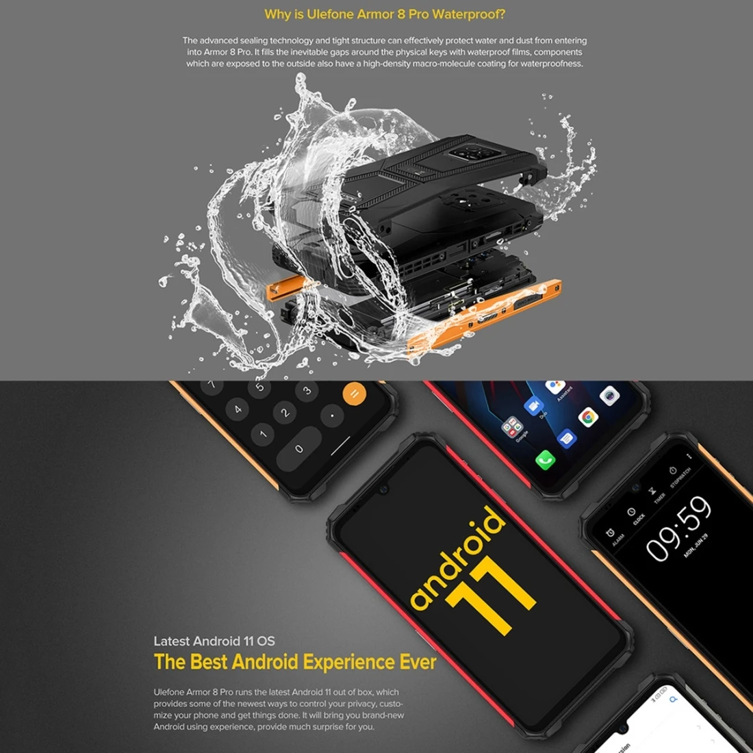 Смартфон Ulefone Armor 8 Pro на Android 11, экран 128 дюйма, 8 ГБ + 6,1 ГБ