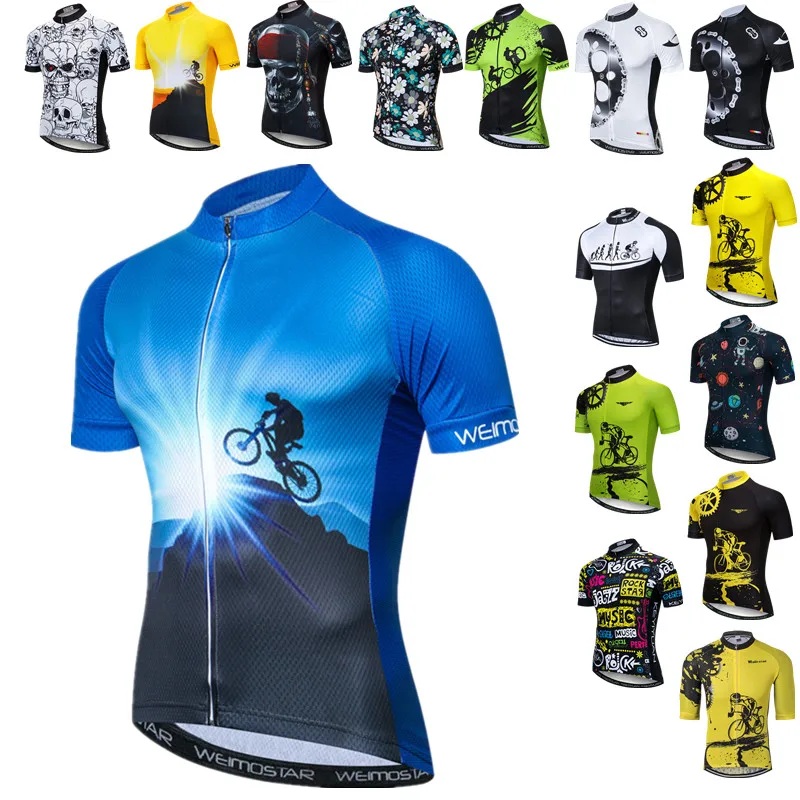 Синяя мужская веломайка Weimostar с коротким рукавом, летняя велосипедная рубашка, дышащая велосипедная одежда, топы, одежда для гоночных велосипедов