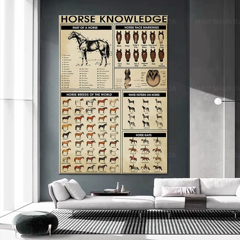 Винтажные холщовые постеры с изображением лошади, настенная живопис...