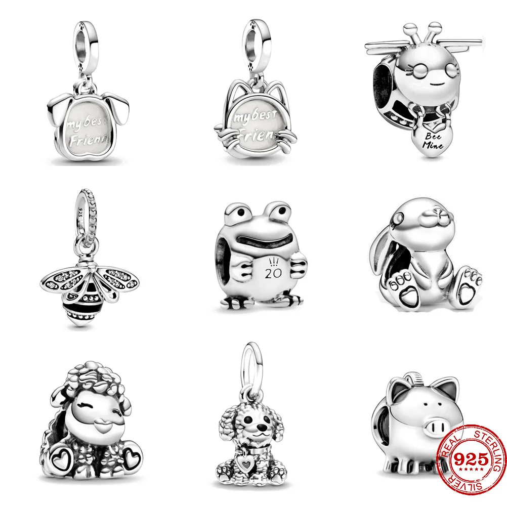 Бусина-Шарм для браслета Пандора, из серебра 2021 пробы, с изображением кота, пчелы, овцы, лягушки