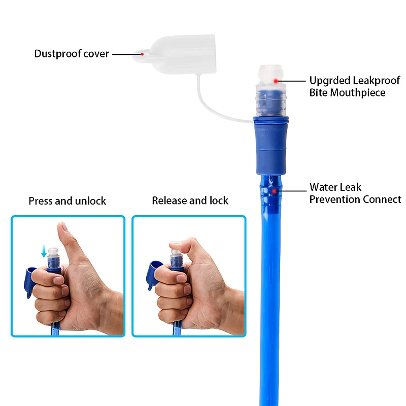 С высоким потоком, вы не будете замедляться во время походов. Просто укусите мундштук, чтобы отсосать воду. Потяните, чтобы пить и нажмите назад, чтобы закрыть. Позволяет выключить поток При неиспользовании и легко тянуть с зубами, чтобы перезапустить поток. Обязательно для большинства любителей велоспорта, прогулок или пеших прогулок.