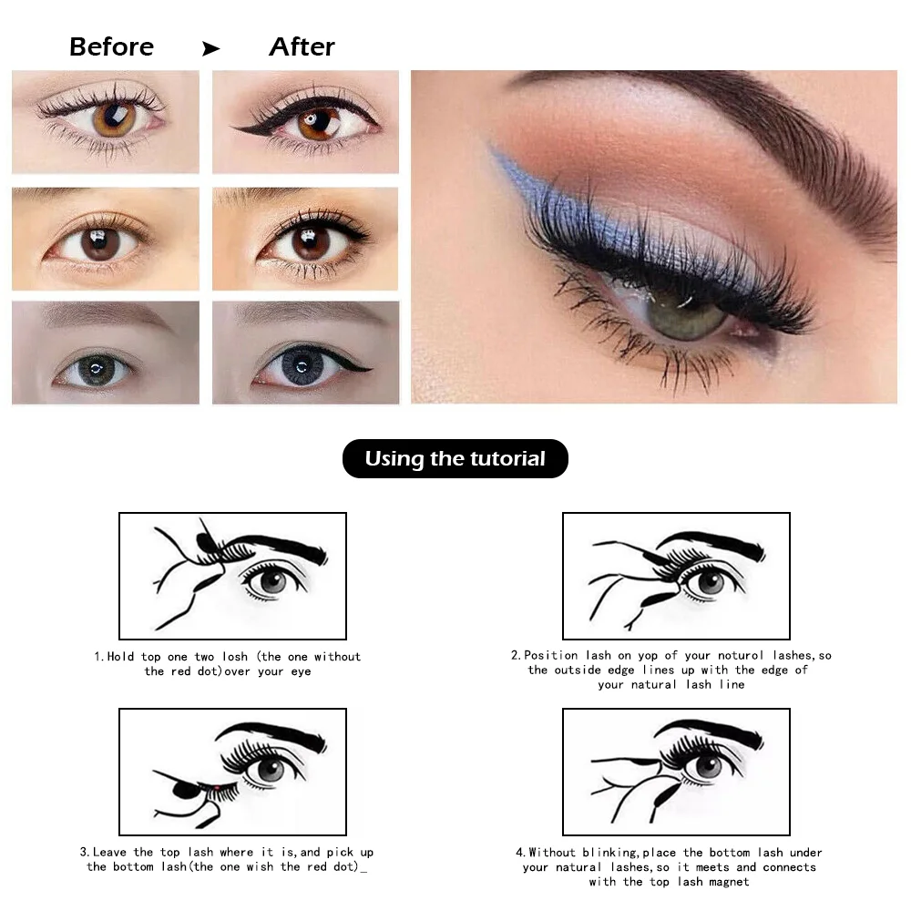 Магнитные ресницы 2 пары, натуральные норковые ресницы ручной работы, многоразовые