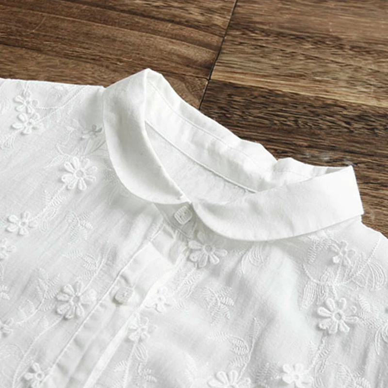Женская рубашка с цветочной вышивкой, белая рубашка в литературном стиле с воротником Питер Пэн и рукавами-бабочками, U673, весна-осень