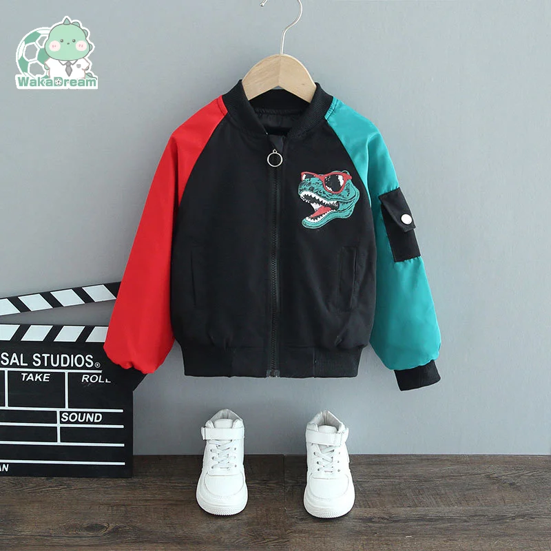 Повседневная куртка для мальчиков, куртка с длинным рукавом и мультяшным принтом динозавра на весну и осень, детская одежда