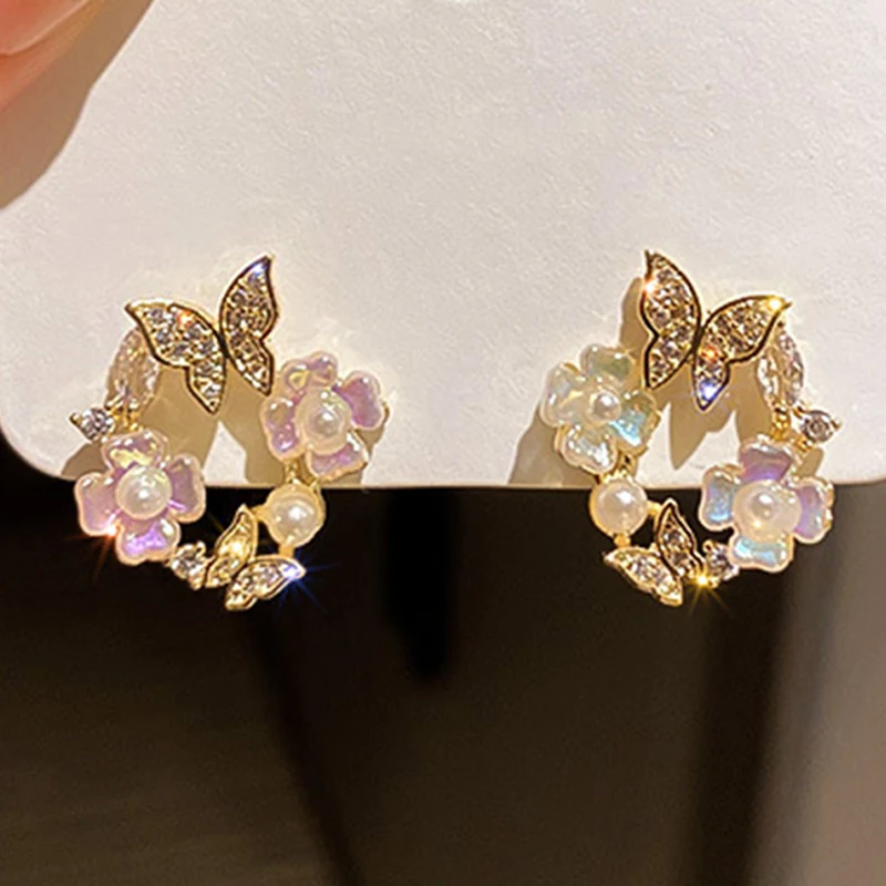Женские серьги в виде бабочек, цветов, колец, животных из смолы