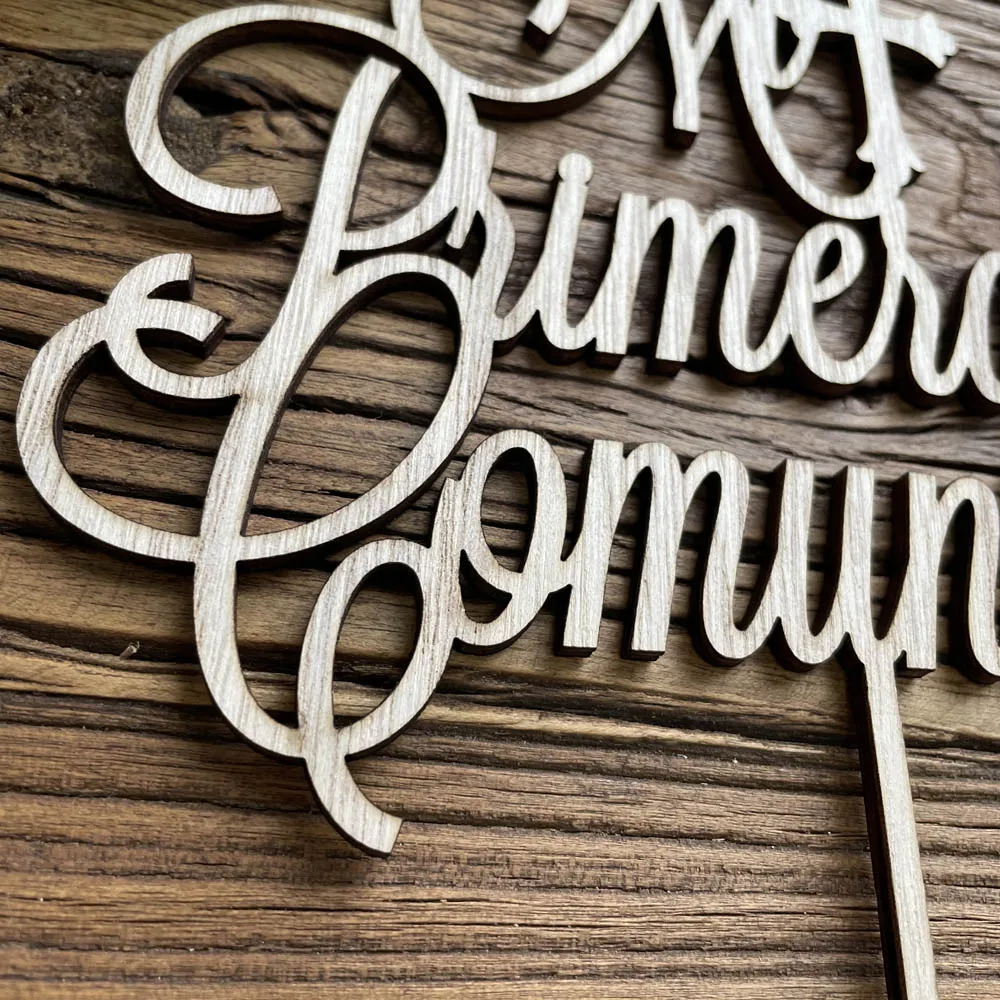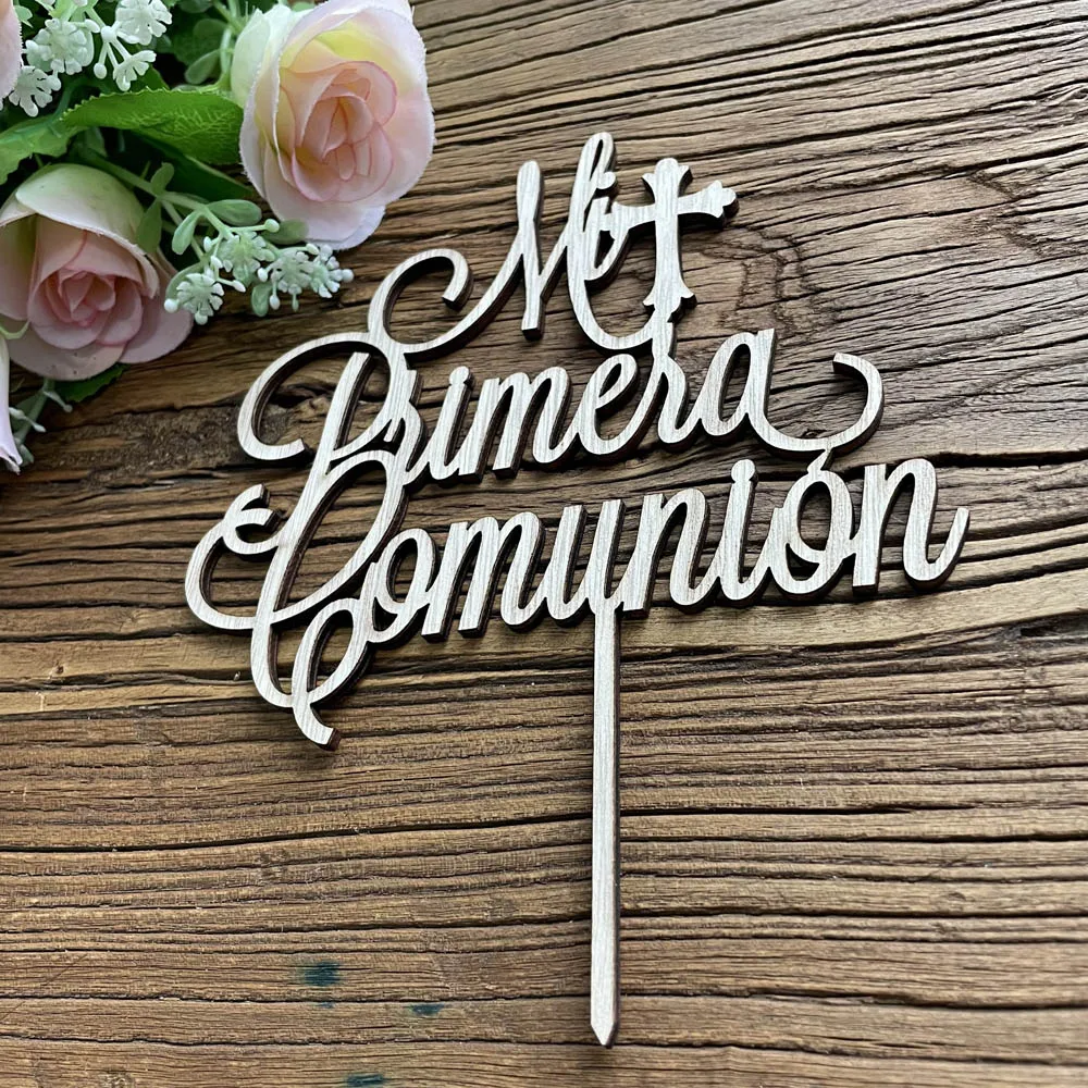 Mi Primera Comunion деревянный Топпер для торта акриловый зеркальный Золотой испанский Топпер для украшения торта для первого причастия