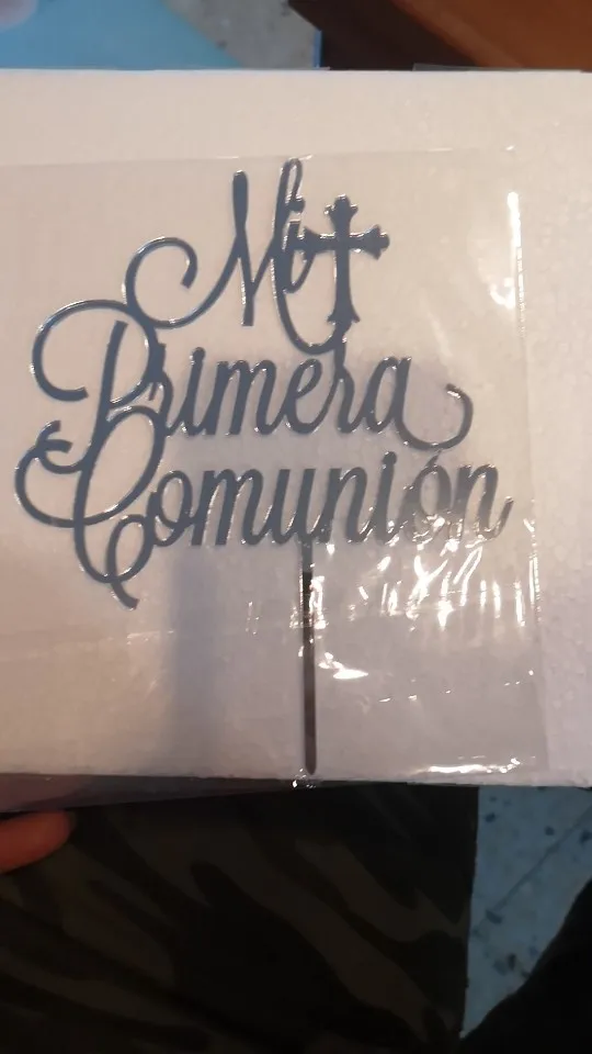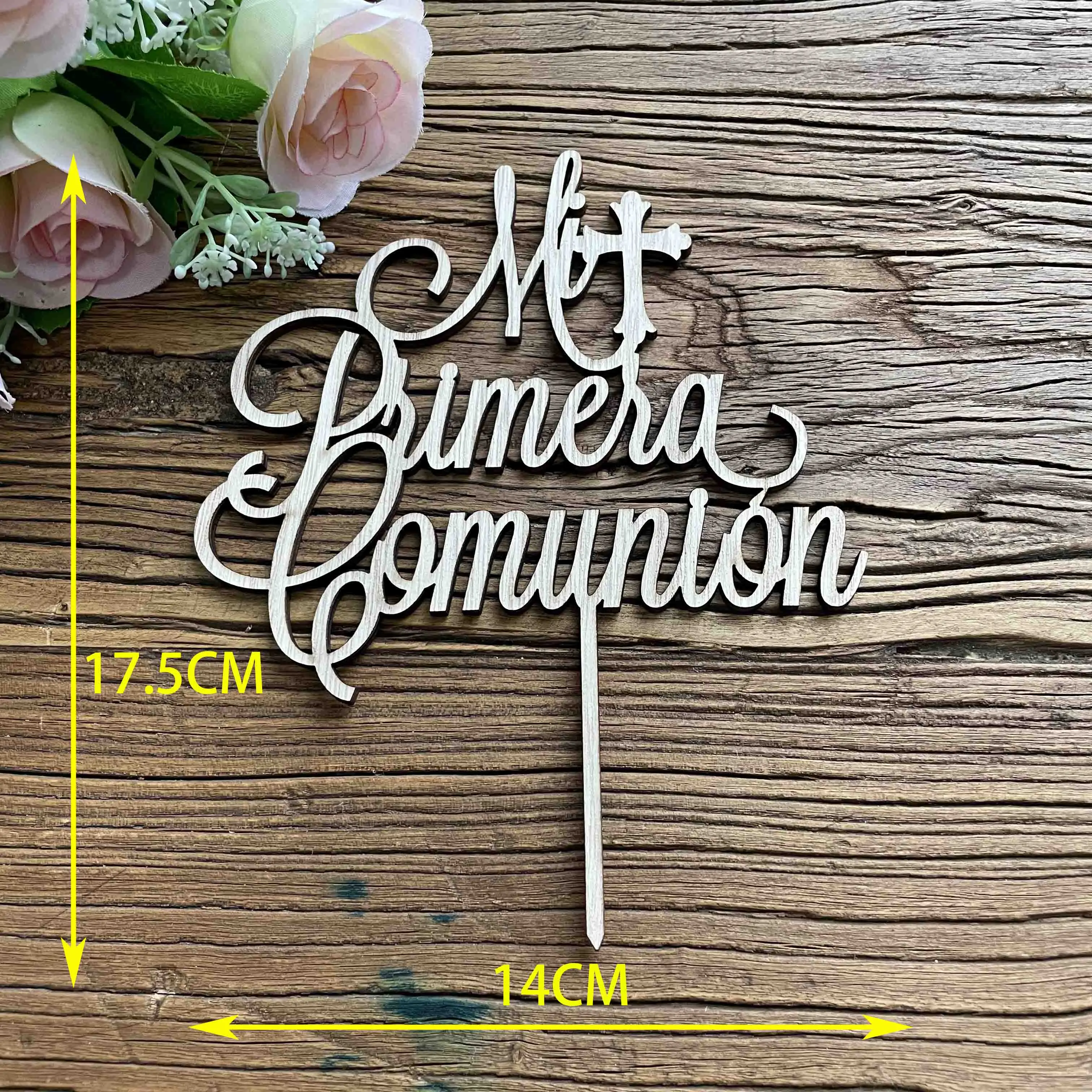 Деревянный Топпер для торта Mi Primera Comunion, акриловый, зеркальный, золотой, испанский, для первого причастия вечерние, украшение для торта