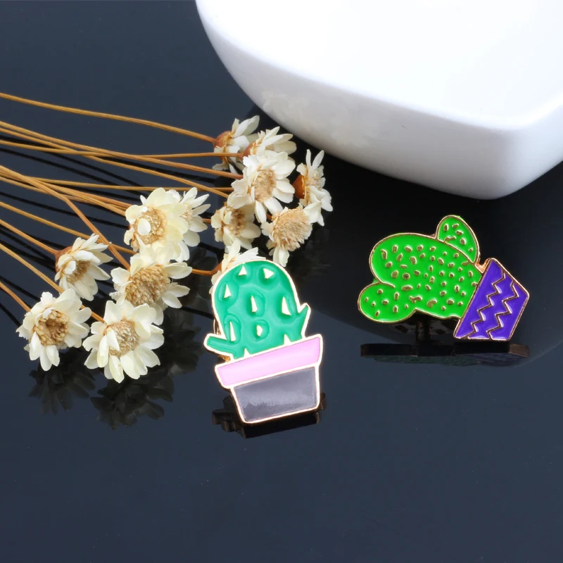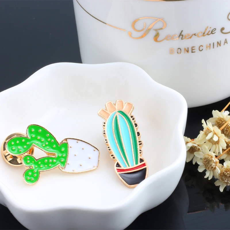 Мультяшные броши в горшке с растениями, милая эмалированная булавка с зеленым КАКТУСОМ, металлический значок на заказ для друзей, детей, курток, булавки для лацканов, модные украшения