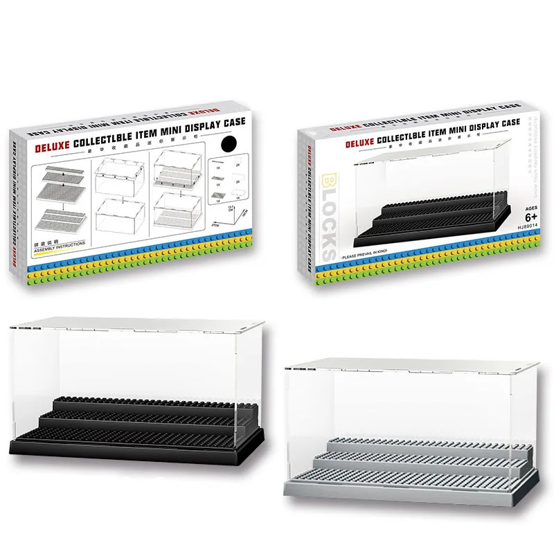 Акриловый пылезащитный боксЧехол, Коллекция строительных блоков, серая трехступенчатая Базовая пластина, дисплейПоказать чехол, бокс, фигурки, искусственные подарки