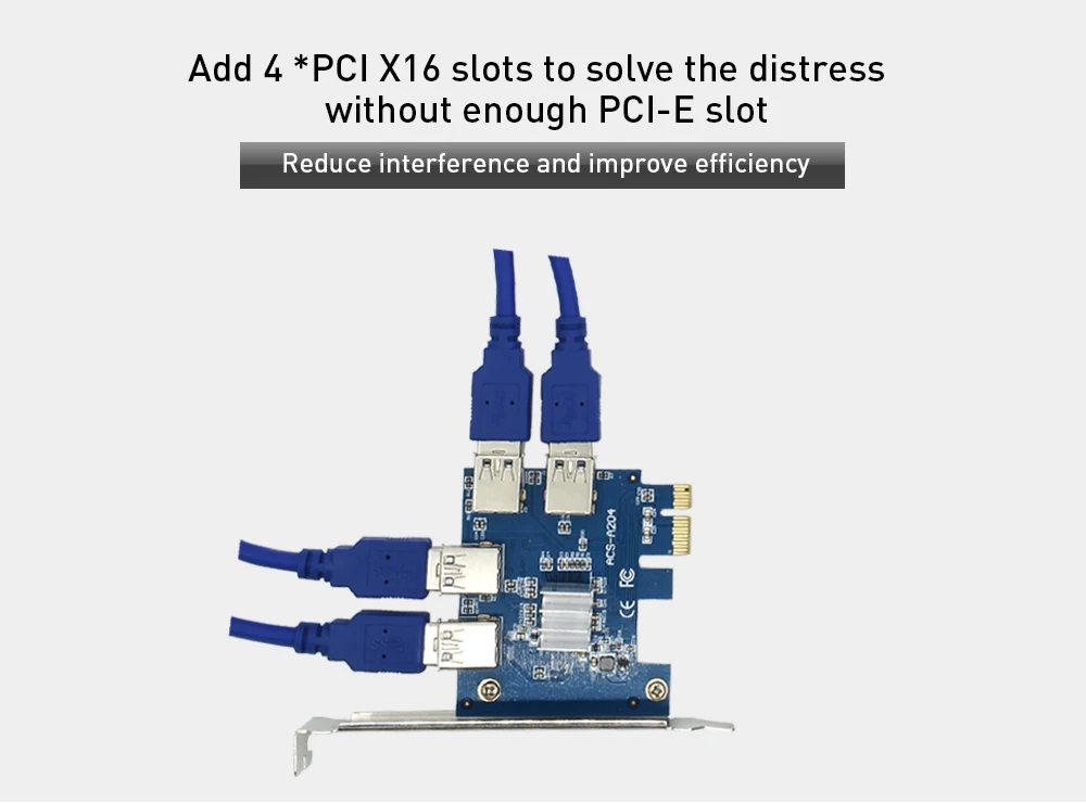 Адаптер COVYIV PCI-E-PCI-E, 1 поворот, 4 разъема PCI-Express, 1x до 16x, USB 3,0, карта расширения PCIe, конвертер для майнинга BTC