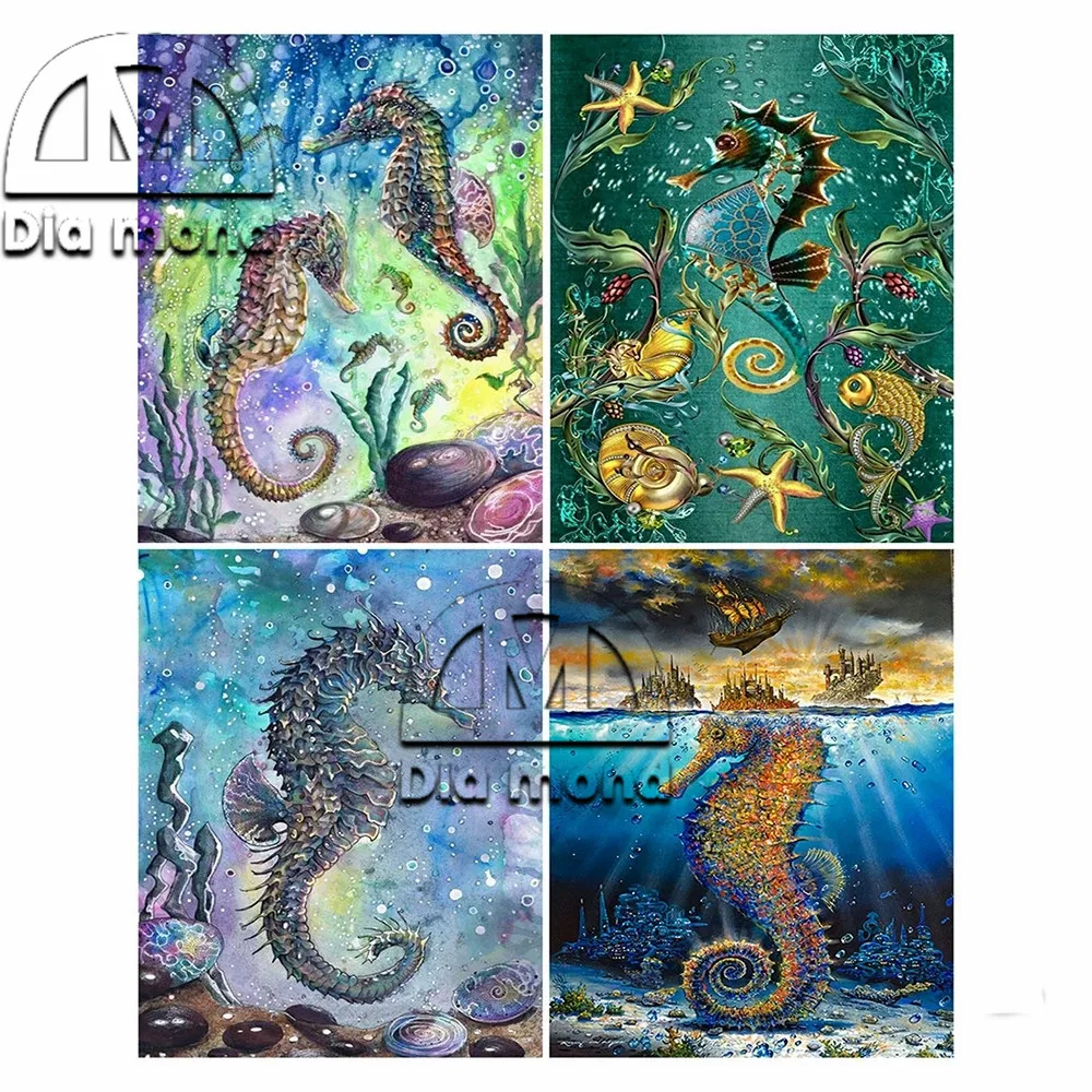 Картина Морской пейзаж сделай сам, алмазная вышивка с животными, гиппокамп, полное сверление, стразы, вышивка крестиком, домашний декор