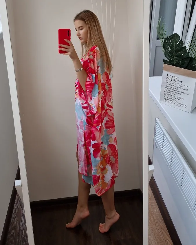Купальник с накидкой безумно красивый и сидит идеально! На фигуре эффектно смотрится, взяла размер L на свой 46 (90*72*99) при росте 175 см. Доставка примерно 3-4 недель до Алматы. Продавец проверенный, купальная ткань плотная и качественная. Смело можно брать!