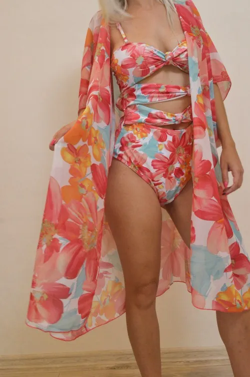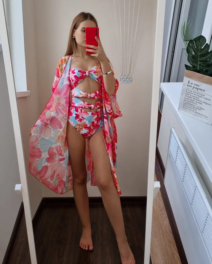 Яркий и стильный купальник в сочетании с пляжные платьем-туникой. На параметры 96/73/97 заказала размер L, можно было брать на размер меньше. Смотрится эффектно, идеален для отпуска и фотографий! Продавец как всегда на высоте!