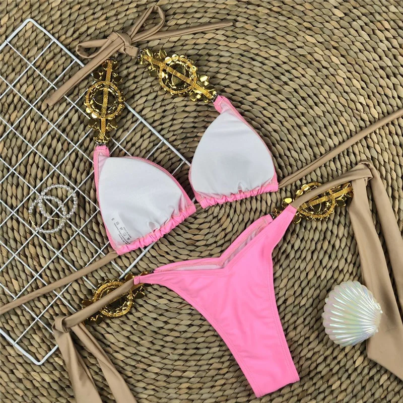 Комплект бикини Zjega, мини-бикини, Блестящий купальный костюм с бр...