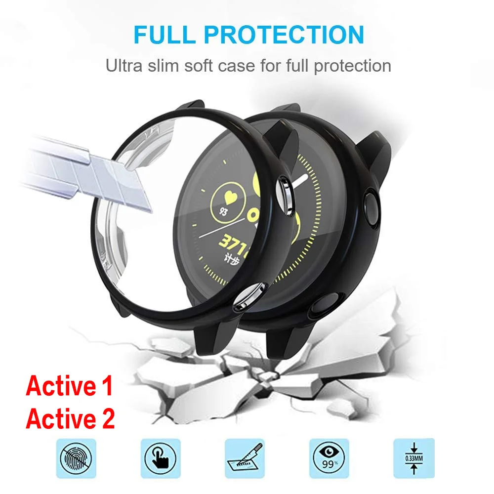 Чехол для Samsung watch active 2 44 мм 40 мм active 1, мягкий всесторонний бампер из ТПУ и защитная пленка для экрана Galaxy watch active 2, чехол