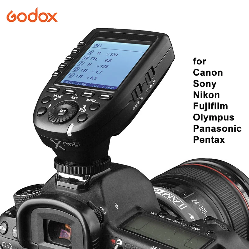 Беспроводной триггер вспышки Xpro-C TTL может не только управлять вспышками со встроенной системой Godox Wireless X, e g. Вспышки камеры, наружные вспышки и студийные вспышки, но также могут управлять оригинальными вспышками пушки при использовании в комбинации с X1R-C приемником. Благодаря многоканальному запуску и стабильной передаче сигнала, этот триггер для вспышки применяется к камерам серии Canon EOS.