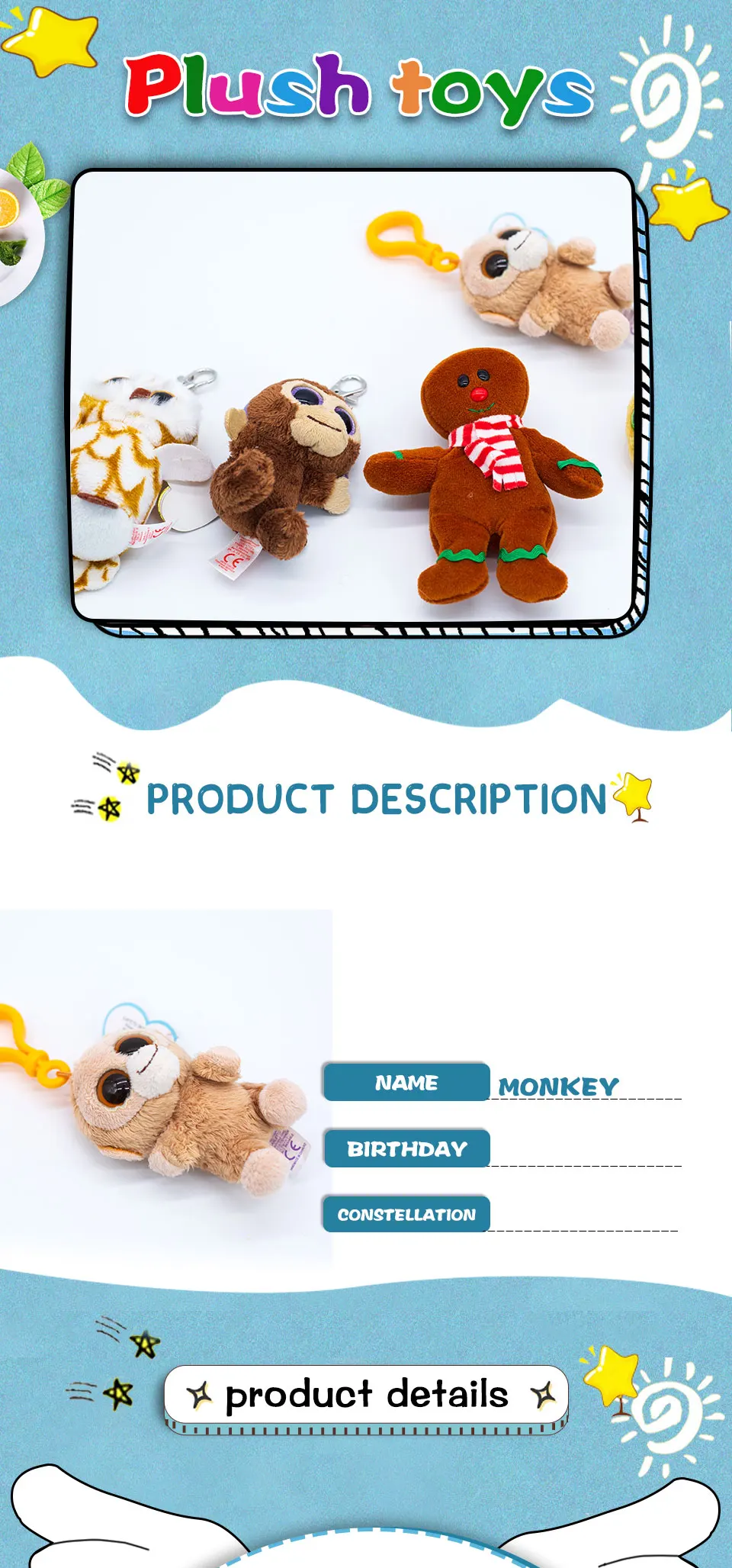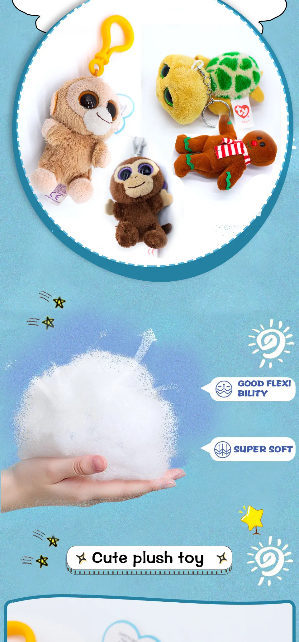 Брелок для ключей с двусторонними блестками, 10 см