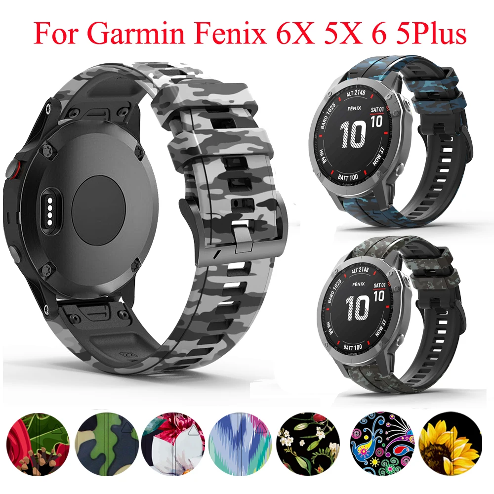 Силиконовый ремешок для часов с принтом для Garmin Fenix 5X/5/6X Pro/6/935/945/MK1/3 HR, сменный ремешок на запястье, пряжка, ремешок 22/26 мм