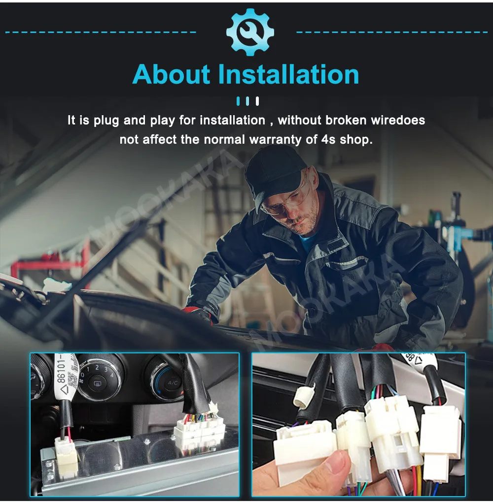 Это установка plug-and-play, но мы рекомендуем вам найти местного профессионального инженера по установке или магазина car a & V для установки нашего оборудования на вашем автомобиле