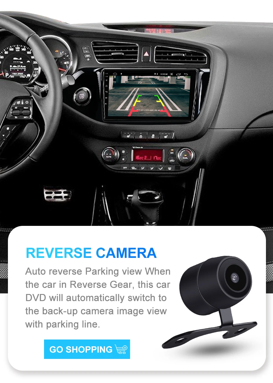 >>> Включите заднюю передачу и автоматически переключитесь на задн ее изображение на дисплее. Находите препятствия вовремя, создавай те безопасные условия для вождения (если вам нужна камера, нажмите, чтобы заказать)