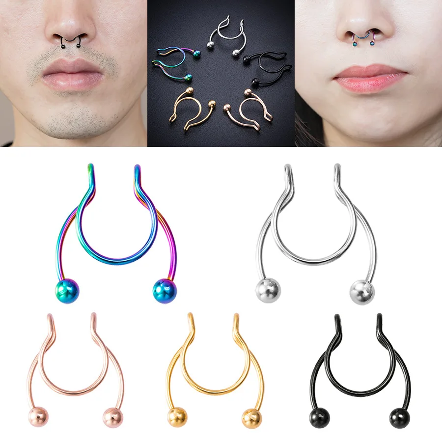 Кольцо для носа с клипсой из нержавеющей стали, обруч для имитации ...