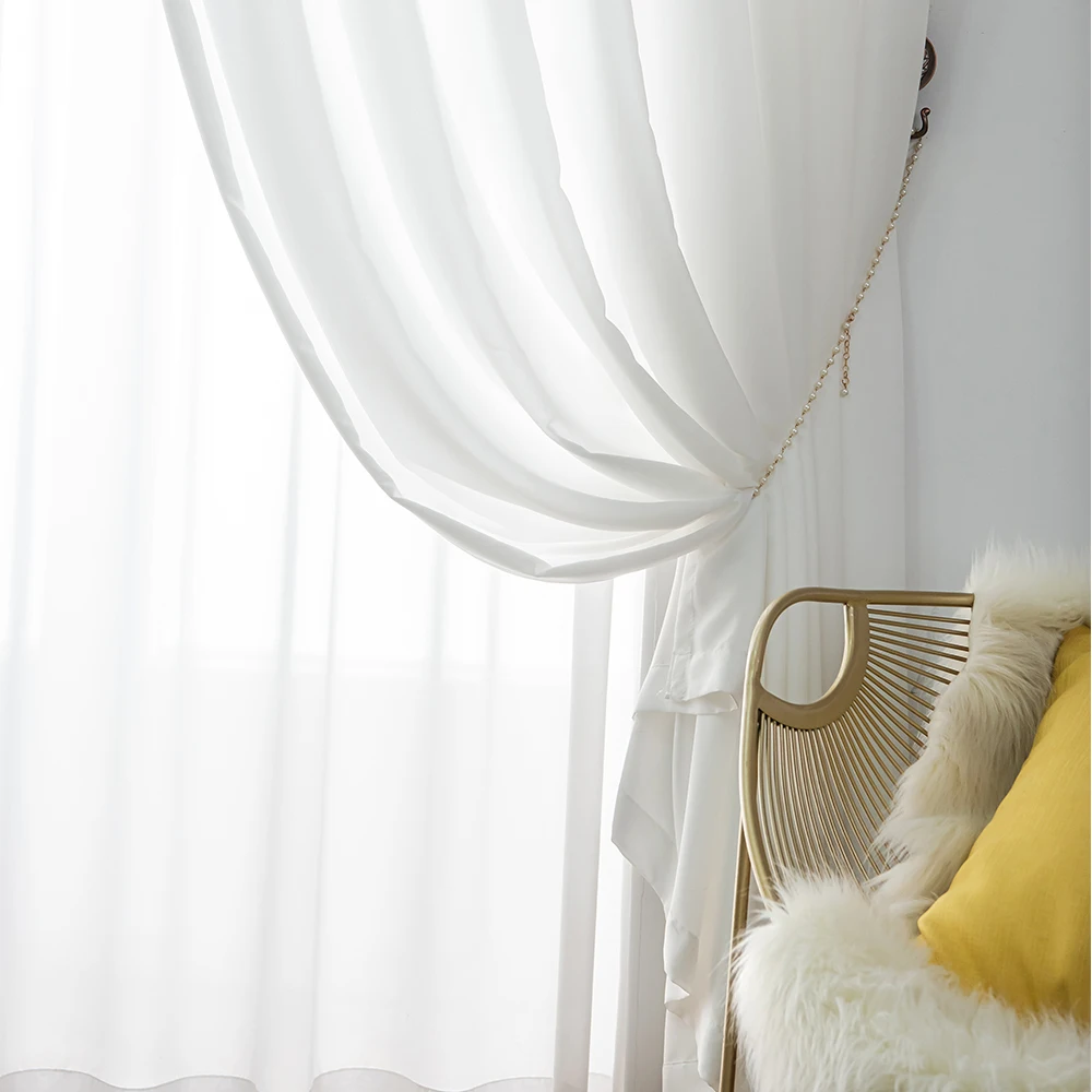 Шифоновые белые прозрачные Занавески для гостиной занавески из тюля...