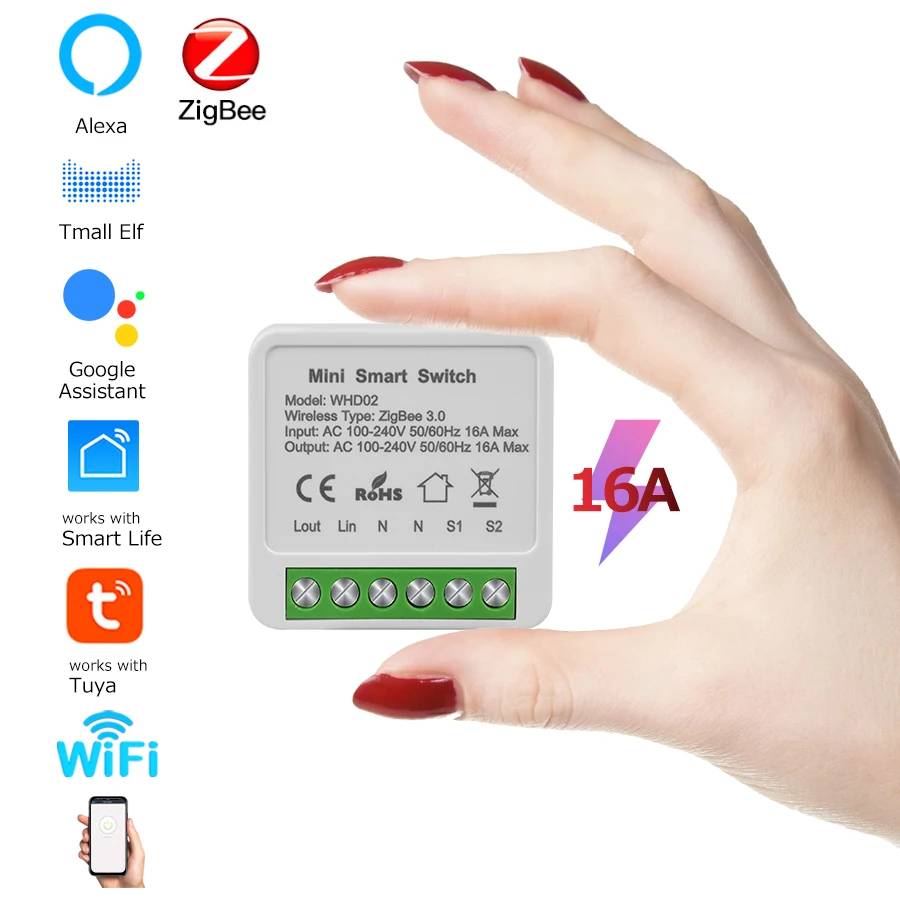 Мини Wi-Fi переключатель Zigbee, двухсторонний выключатель с голосовым управлением, работает с Alexa Google Home, максимальное освещение 10 а16 А