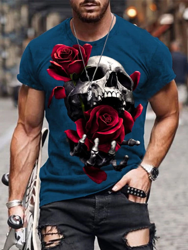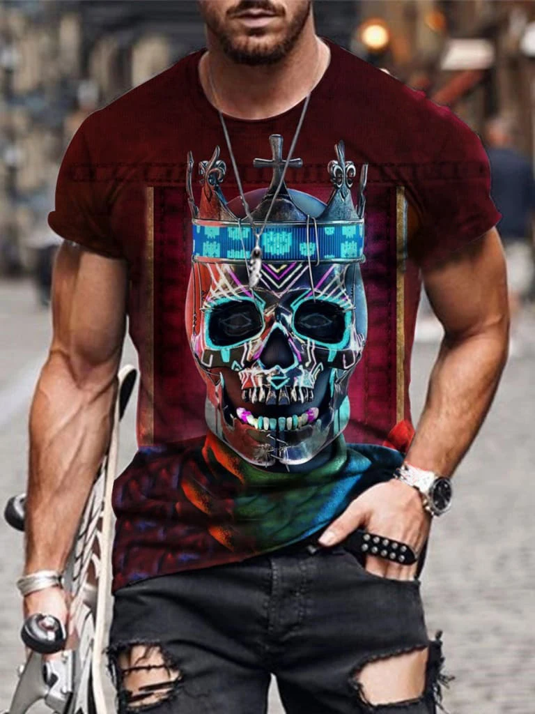 Футболка мужская с 3D-принтом черепа, уличная тенниска с коротким рукавом, модный ужасный дизайн, майка с мышцами, лето