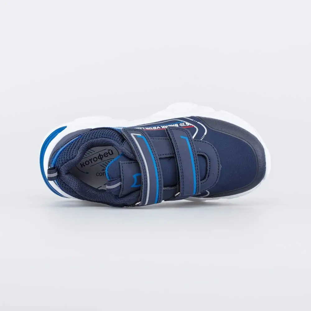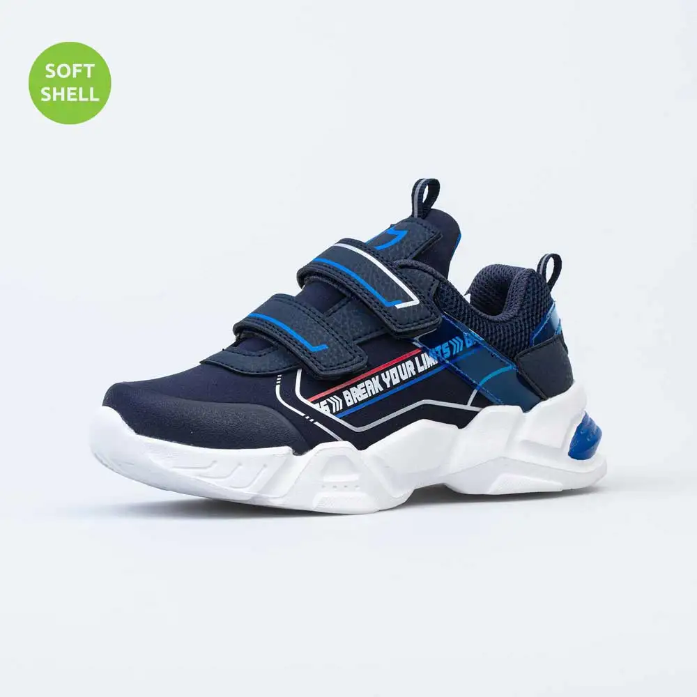 Кроссовки для мальчика с верхом из материала SoftShell. - Верхний слой из материала SoftShell - защита от непредсказуемых погодных условий и комфортный микроклимат внутри. - Внешний слой отталкивает влагу, обладает эластичностью и повышенной прочностью. -Внутренний слой — сохраняет тепло и позволяет ноге «дышать». -Подкладка из текстиля обеспечивает ногам комфорт и уют. -Носочная и задняя часть дополнены накладкой, обеспечивающей дополнительную прочность. - Модель фиксируется при помощи двух \' велькро\', что позволяют легко обувать и снимать обувь, а также регулировать посадку на стопе. - Мягкий манжет создает комфорт при ходьбе и предотвращает натирание ножки ребенка. -Подошва легкая, мягкая, эластичная, и прочная. Кроссовки из материала «SOFTSHELL» универсальны. Они подходят для комфортного использования, как в спортзале, так и на улице.