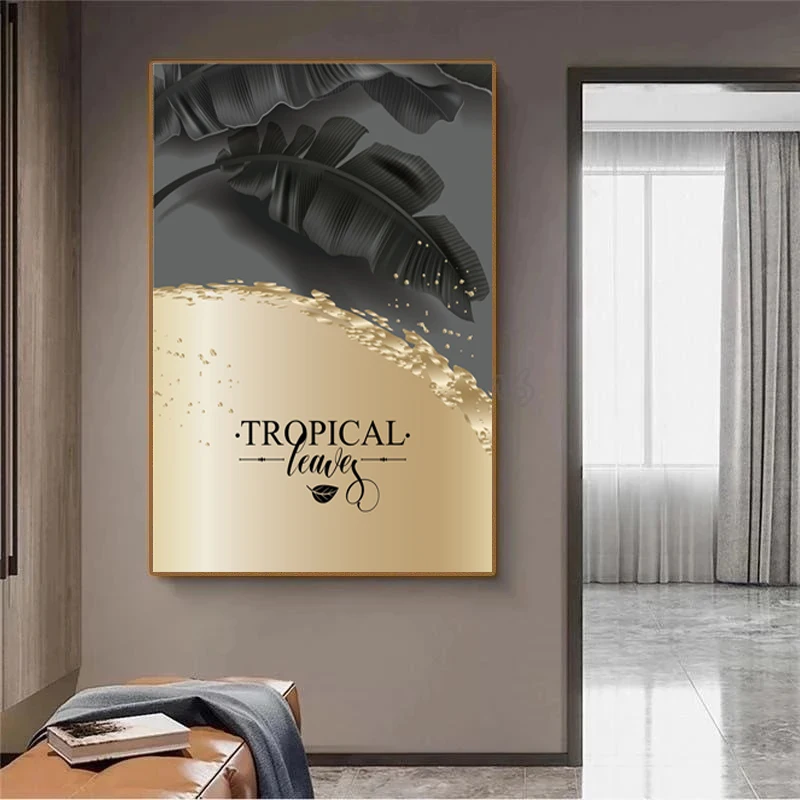 Роскошная тропическая Скандинавская картина маслом с золотыми листьями на холсте настенные художественные плакаты с принтом настенные картины для спальни домашний декор