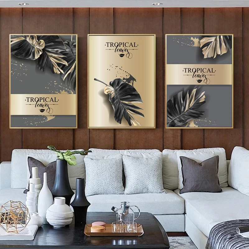 styleTropical Golden leaves Canvas Paintings for living room wall