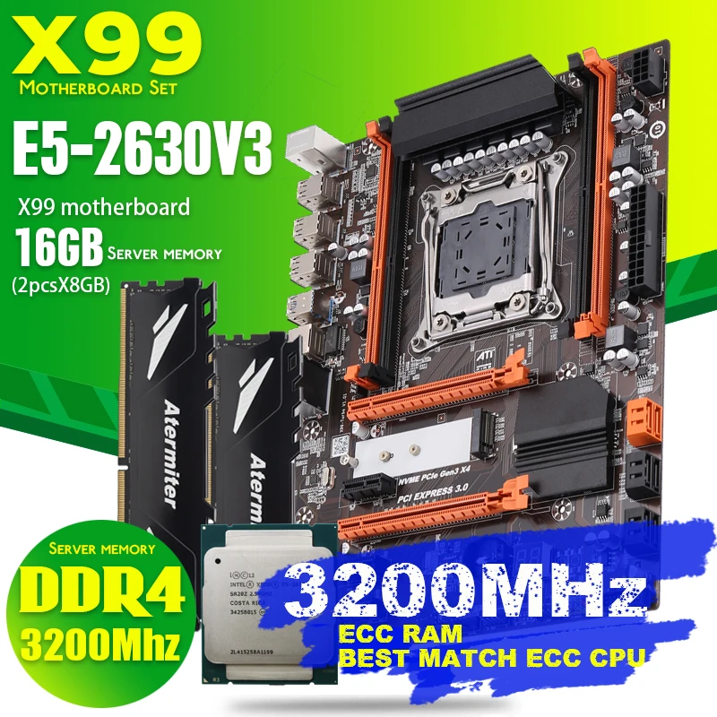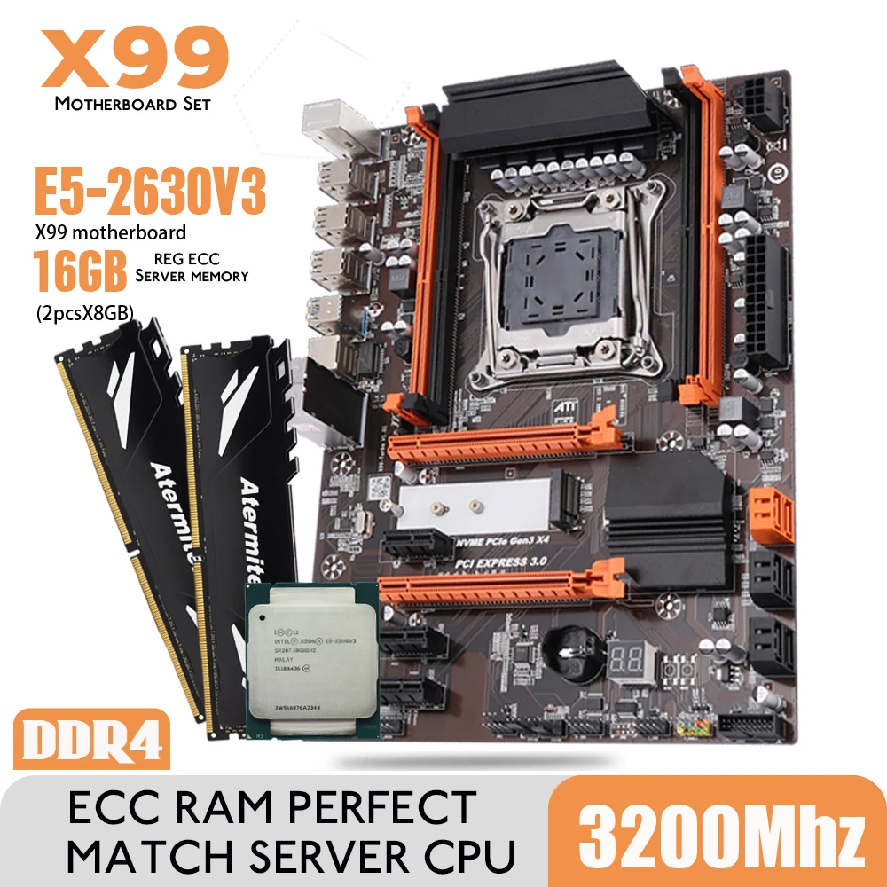 Материнская плата Atermiter X99 Turbo DDR4 D4 с процессором Xeon E5 2630 V3 LGA2011-3 2 шт. X 8 ГБ = 16 Гб 3200 МГц DDR4 память REG ECC RAM
