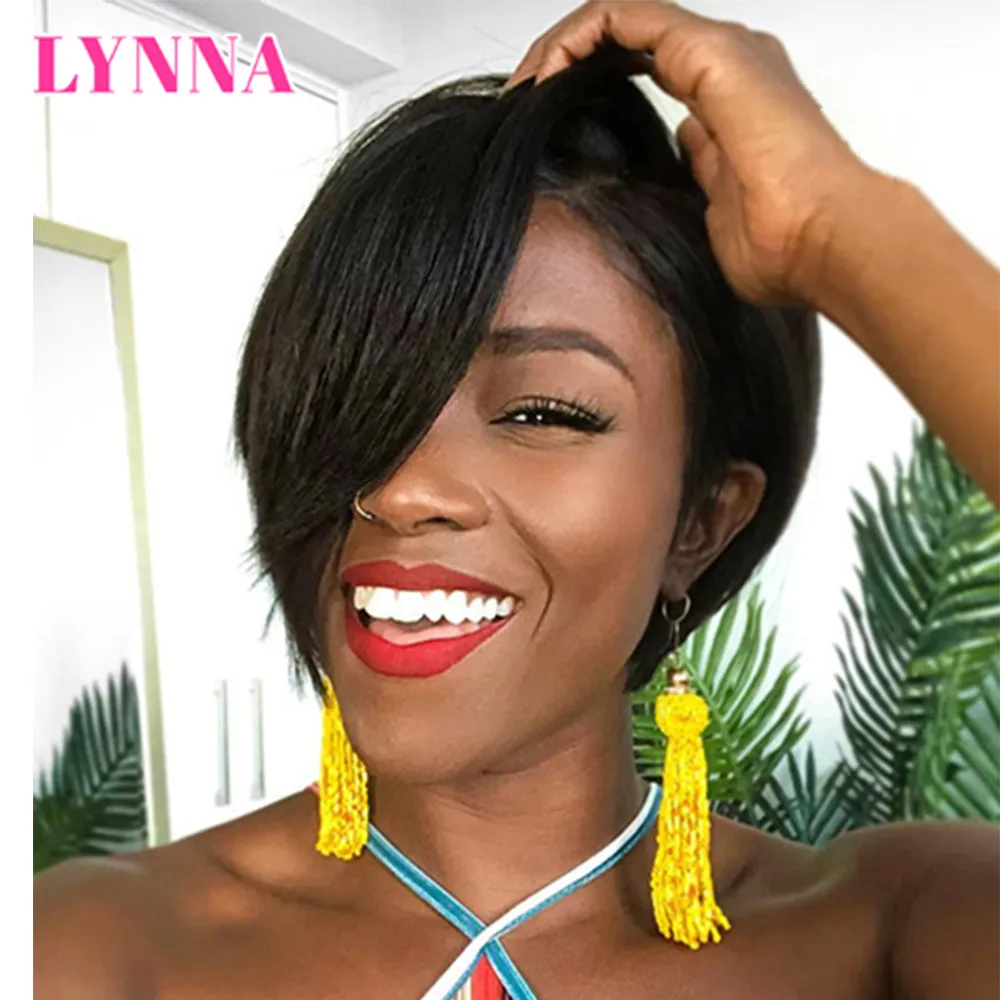 LYNNA короткие волосы, парики машинной работы, дешевые прямые челов...