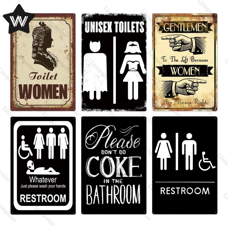 Знак унитаза, потертый шикарный винтажный металлический жестяной знак, Унитазы для женщин и мужчин, табличка для пещер, настенная табличка для украшения комнаты отдыха, металлическая наклейка